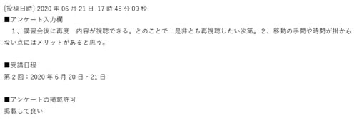 オンライン講習会を受けた方からのメッセージをご紹介いたします。